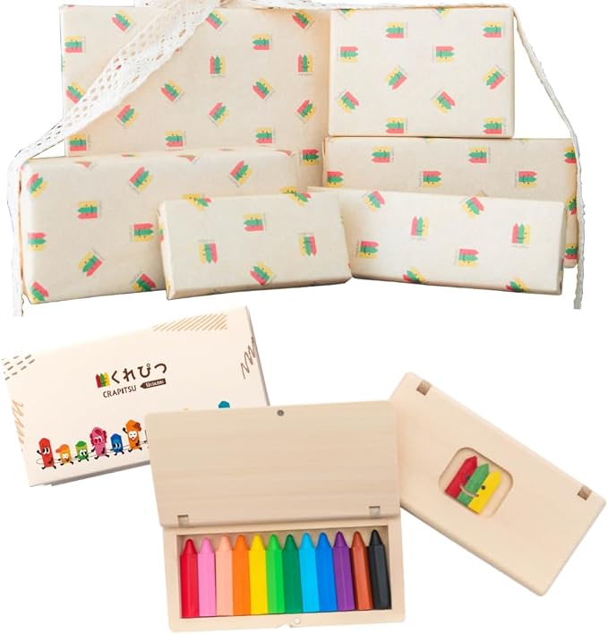 「くれぴつ 木のふで箱 12色」は、太めで握りやすい形状のクレヨンで、2歳がまだ安定しにくい筆圧でも描きやすい設計です。折れにくく、強く押しつけて描くことの多い時期でも形が崩れにくいため、線を引く動作を繰り返し練習しやすいのが特徴です。また、手が汚れにくい仕様のため、色移りを気にせずに取り組めます。汚れた際は水で洗える素材で作られており、使用後の手入れがしやすい点も特徴です。色を選ぶ場面では視覚的な興味が広がり、「どれにする?」と選択肢を意識するきっかけにつながります。初めてのお絵かき遊びでも取り入れやすい知育アイテムです。