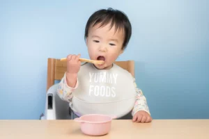以下の記事では、1歳頃からのスプーン練習について、詳しく解説しています。