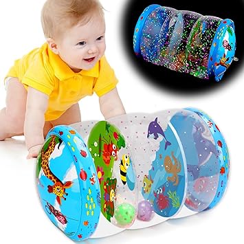 Thremhooの「クロール&ウォーキング」は、転がすとスパンコールが光って赤ちゃんの興味を強く引きます。大きな筒状の形を転がして追いかける動作は、両足を使った移動を促しやすい遊びです。ずりばいで片足しか使わない赤ちゃんも、自然に両足を交互に動かす練習になります。光と動きの刺激が加わることで、楽しく発達をサポートできるアイテムです。